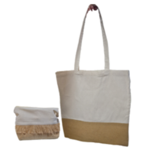 Comprend une trousse en jute et coton naturel, et un sac shopping en coton sergé.